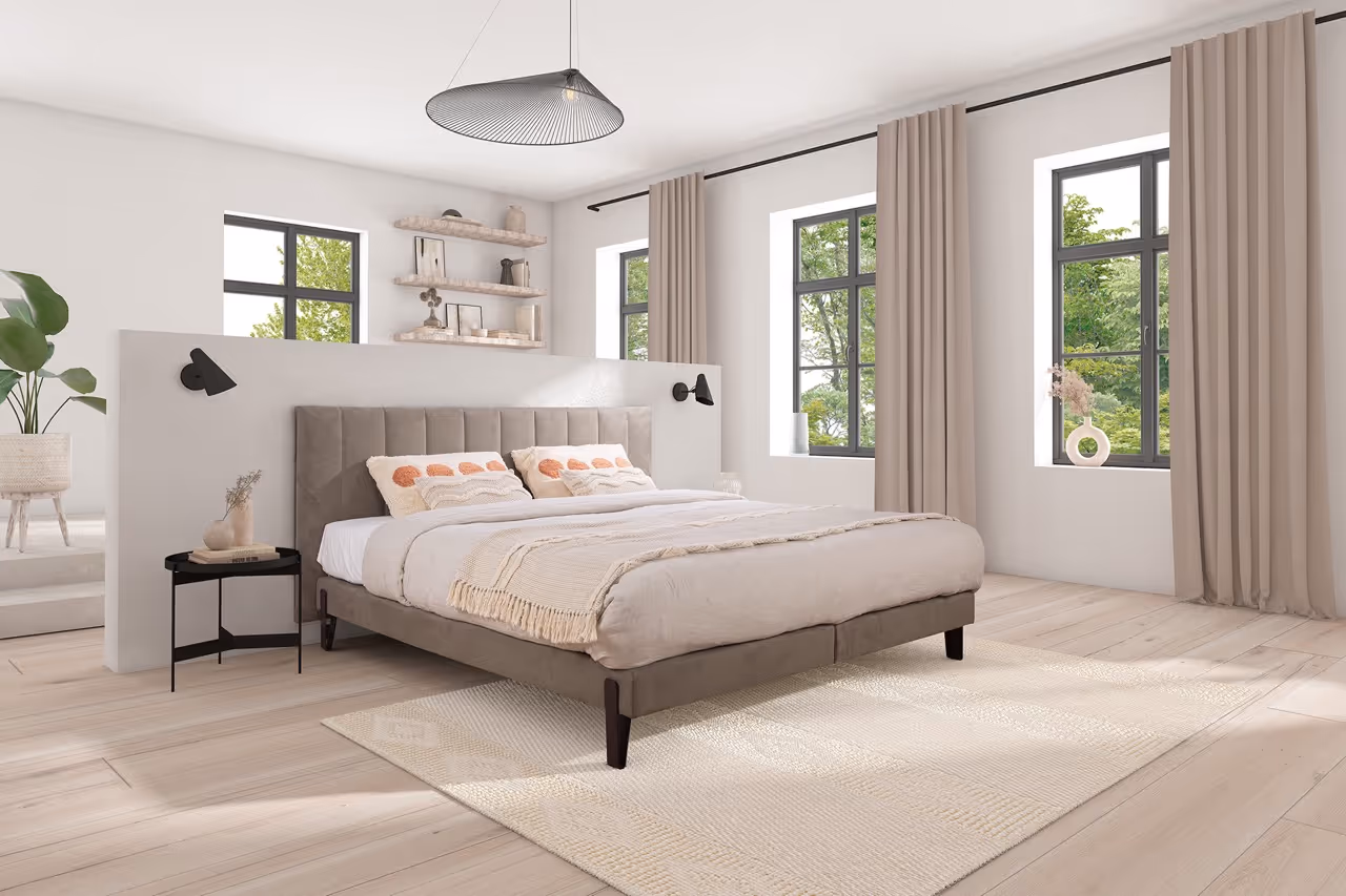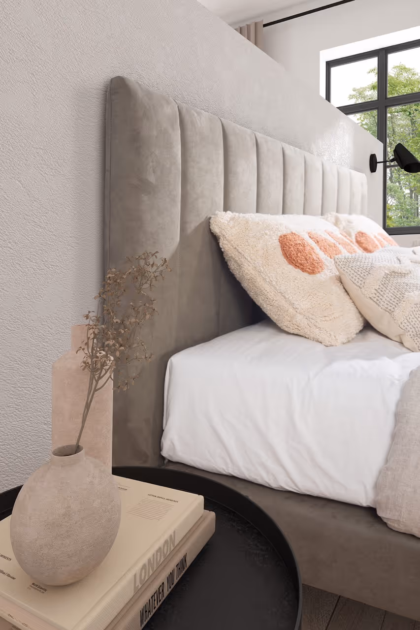 247 hoofdbord vormt de blikvanger van je slaapkamer en maakt je inrichting helemaal af, met keuze uit 9 verschillende hoofdborden. Je personaliseert het met een brede selectie kwalitatieve stoffen en structuren voor precies de look die bij jou past. Voor de afwerking kies je zelf tussen houten of metalen poten, in een vierkante of ronde uitvoering, zodat alles perfect aansluit bij jouw stijl.