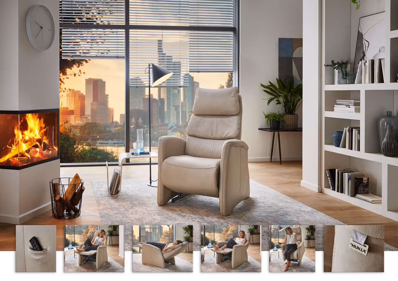 Deze relaxzetel is beschikbaar in smal, medium, large en extra large en kan bekleed worden in stof of leder. Je kiest uit verschillende voeten en ruguitvoeringen voor een persoonlijke afwerking. Optioneel zijn onder meer een elektrisch verstelbare hoofdsteun, batterij, USB-uitgang, verwarming of massage. De verlengde rug en voetsteun maken hem ideaal voor grotere personen, met extra comfort dankzij opstaphulp en hartbalanspositie.