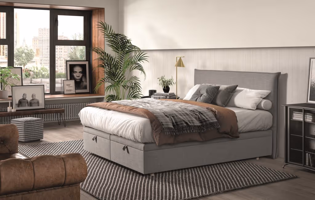 De Storage Box is een stijlvolle boxspring met geïntegreerde opbergruimte. Dankzij de praktische schuiflade aan de voor- of zijkant combineert dit bed optimaal slaapcomfort met extra bergruimte. De stevige constructie en kwaliteitsmaterialen zorgen voor duurzaamheid, terwijl je met verschillende hoofdborden en stofferingen het bed volledig kan afstemmen op jouw interieur.