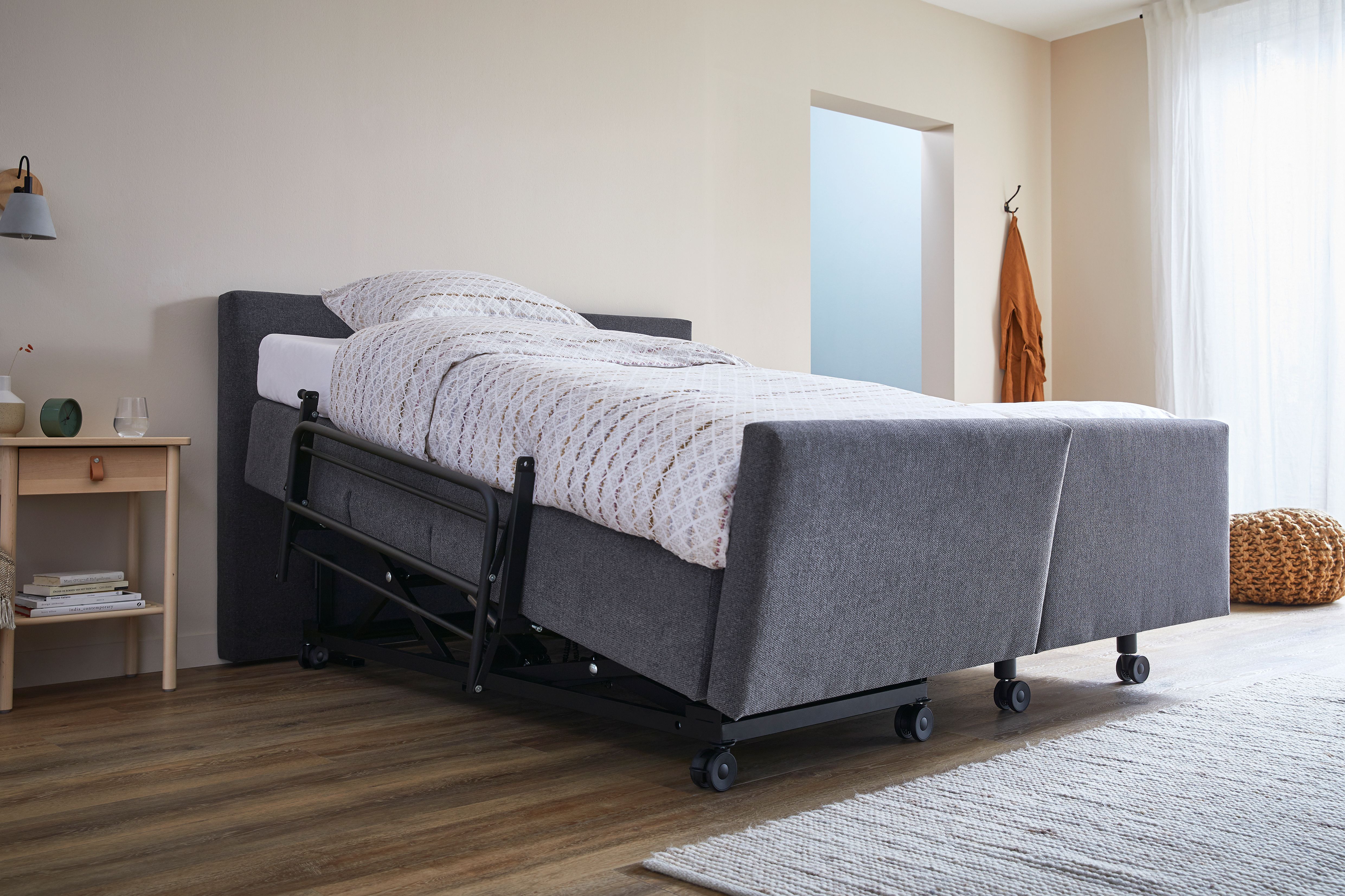 Een zorgbed hoeft niet kil of onpersoonlijk te zijn. Onze hoogwaardige zorgbedden combineren de functionaliteit van een hoog-laagbed met het comfort en de uitstraling van een luxe boxspring. Zo geniet je van optimale ondersteuning en een stijlvolle slaapomgeving, zonder in te boeten op veiligheid en gebruiksgemak.